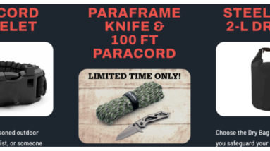EMBRACE THE OUTDOORS.TREK YOUR ADVENTURE IN CONFIDENCE. GEAR UP FOR ADVENTURE, EMBRACE THE UNKNOWN, AND BE PREPARED FOR ANYTHING WITH THE STEEL RIVER ADVENTURER’S BUNDLE – 100 Feet of High Strength Paracord– Steel River 2-Liter Dry Bag– Steel River Paraframe Knife– Steel River Paracord BraceletYOURS FREE TODAY, JUST COVER S&H! (Visited 1 times, 1 visits…