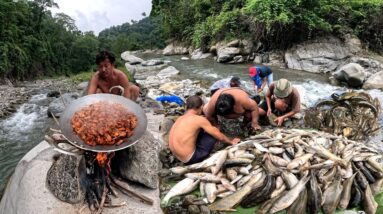 Traditional Fishing Technique Nepal Duwali Fishing Modi Gaon Fish & Buff Meat Cooking & Eating